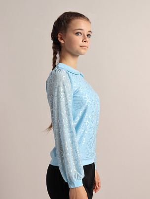 Купальник гимнастический с коротким рукавом. Вырез горловины и проймы ножек окантованы бейкой из основного полотна.