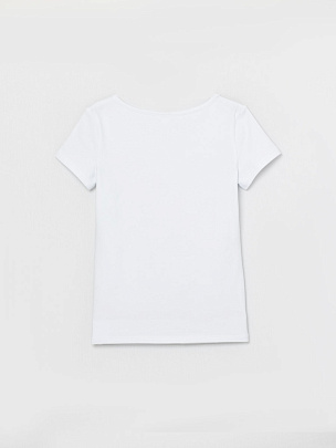 Футболка для девочки с коротким рукавом. Вырез горловины круглый, окантован бейкой из основного полотна.