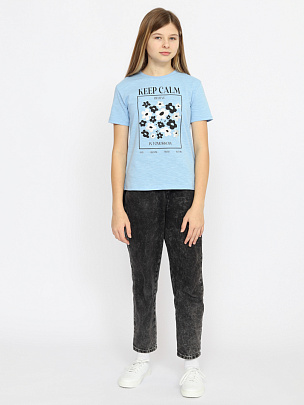 Футболка для девочки с трендовым колледж-принтом, с блестящим эффектом и контрастными бейками по горловине и рукавам. Модель сделана из 100%-хлопкового трикотажа. Материал приятно прилегает к телу, не сковывает движения и позволяет коже дышать.
