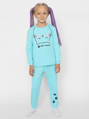 Пижама для девочки (футболка, брюки) светло-бирюзовая