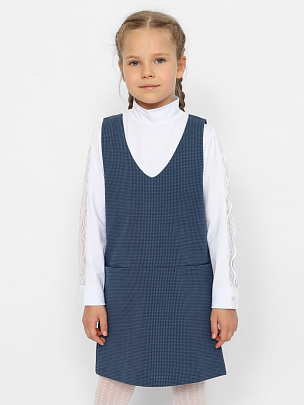 Джемпер для мальчика со спущеным плечом. Рукав втачной с манжетами. Боковые швы джемпера смещены на полочку, низ джемпера обработан поясом с разрезами. Воротник-стойка отложной. Манжеты и пояс выполнены из основного материала.