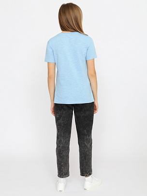OVERSIZE футболка для девочки с короткими рукавами и удлиненной спинкой.В нижней части боковых швов обработаны разрезы. Перед футболки декорированы принтом.