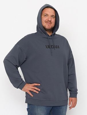 Толстовка мужская прямого силуэта со спущенным плечом, рукава с манжетами. Капюшон с функциональным шнурком. Притачной пояс. Полочка декорирована принтом.