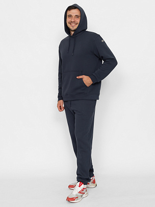 Толстовка мужская с капюшоном со шнурком, карман-кенгуру. Манжеты и пояс из эластичной рибаны. На рукаве декоративная силиконовая нашивка.